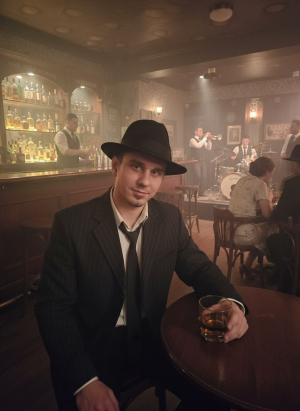 Включив весь артистизм,на публику играя.